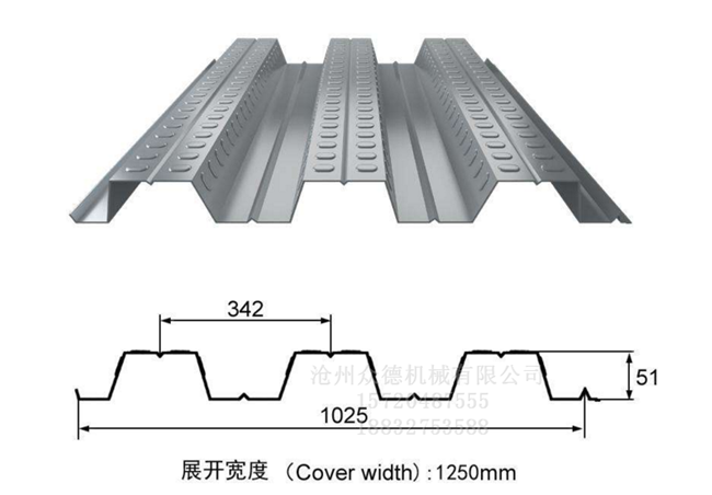 描述:楼承板,又称为楼层板、楼盖板、钢承板,作为钢结构建筑压型钢板,其截面成V型、U型、梯形或相似于这几种形状的波形,已上楼承板机械,我公司均可生产。