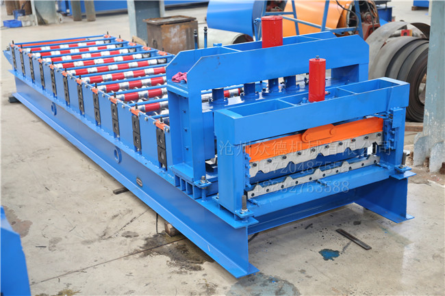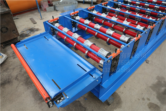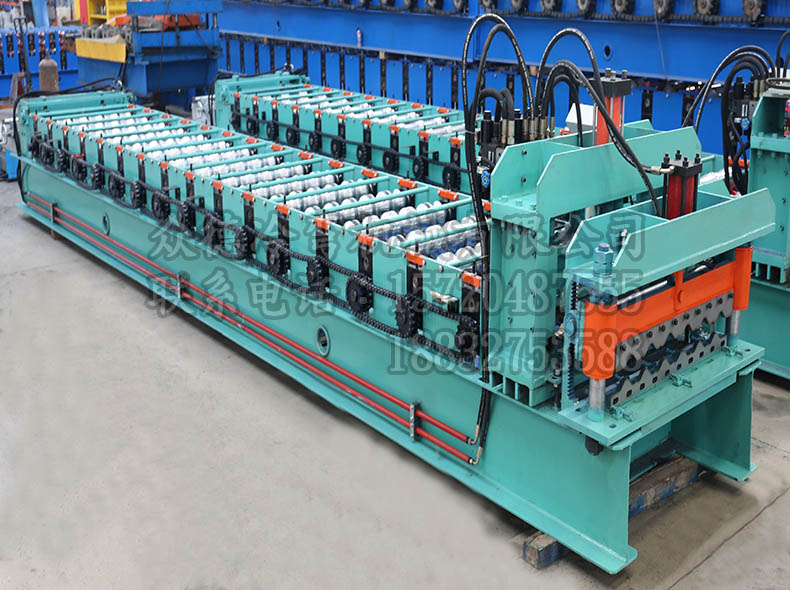 840仿古琉璃瓦压型设备,该设备为一机双用型压瓦机械,可以生产普通840屋顶板,也可以生产仿古型840屋顶板。该设备为全自动电脑控制,自动加工生产,操作简单便捷。 主要技术参数: 1.被动放料:手动涨紧,被动放料 2.放料架承重:5T 3.机架:采用300H钢焊接 4.成型机导向进料架形式:侧向滑板式 5.成型机形式:14mm墙板式链传动 6.轴径: ¢70㎜ 7.链条:1.0寸单排 8.成型机电机功率:3KW减速机 9.成型机线速度:单板840板型10-11m/min 仿古琉璃瓦板型2-5米/分钟 10.成型机道数:11道 11.轧辊材料:45#钢煅打件 12.液压站电机:3kw 13.液压站油泵:齿轮泵 14.切断方式:液压剪切 15.成型剪刀片材料:Cr12 16.剪切刀片热处理:HRC58°-60° 17.轧制厚度:0.3-0.8mm 18.材料展开宽度:1000mm 19.长度定尺精度:±0.2mm 20.电脑采用PLC电脑操作 变频器 |
