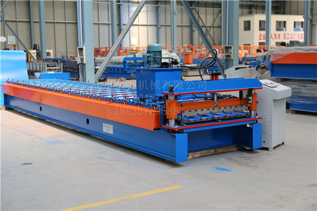 全自动840彩钢板压型机,是一款的彩钢板生产设备,该机器采用计算机控制器程序控制,自动定长,自动切断,配合触控屏操作,简单方便,该机器为全自动PLC电脑编程控制,自动计量长度液压式剪切,断面工整,板型标准!。该机器,制作,设备操作方便,电机功率大,这种机械装有工业控制变频系统,使机器运行加平稳的同时提升了生产的度,成品板型加工整、美观!