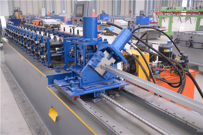 C型隔断龙骨压型设备,为全自动电脑变频控制自动加工生产,是一款高速冷弯成型设备,生产速度每分钟可达30-40米!的同时,机器运行稳定,产品度高;机器操作简单,只需在电脑控制器中数据想要的尺寸数据,一键启动,机器将自动生产,中英文结合,操作简单。每道压辊都搭配手动调节轮,调节方便;板材滚压成型后,机器将自动剪裁,剪裁尺寸,板材断面整齐,无毛刺!